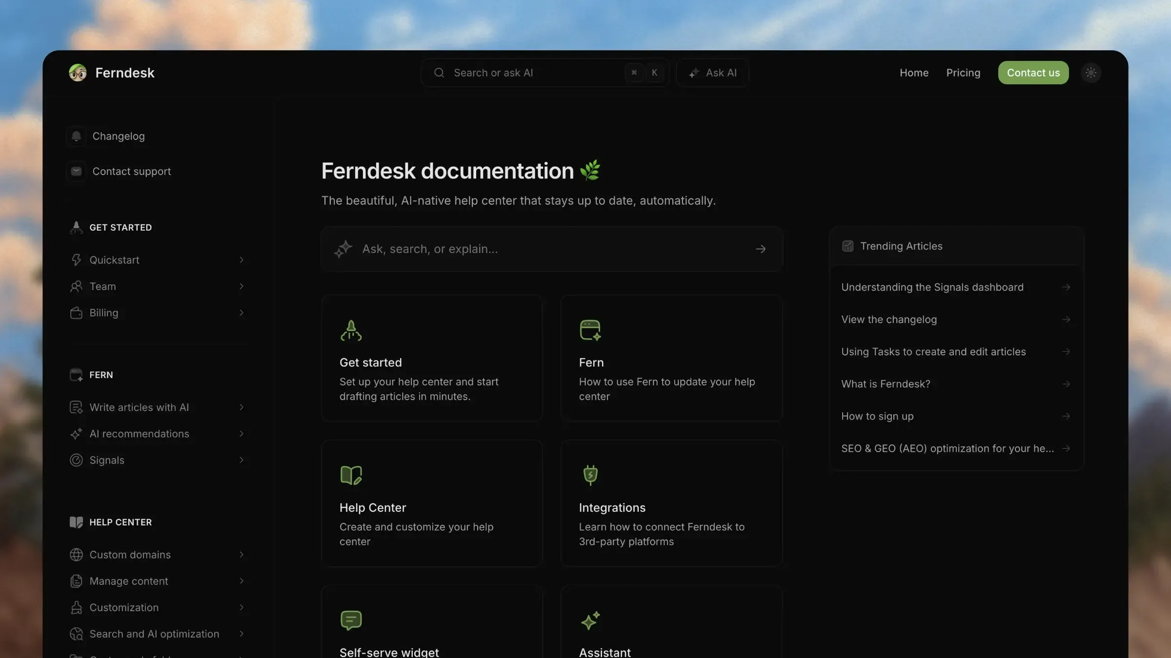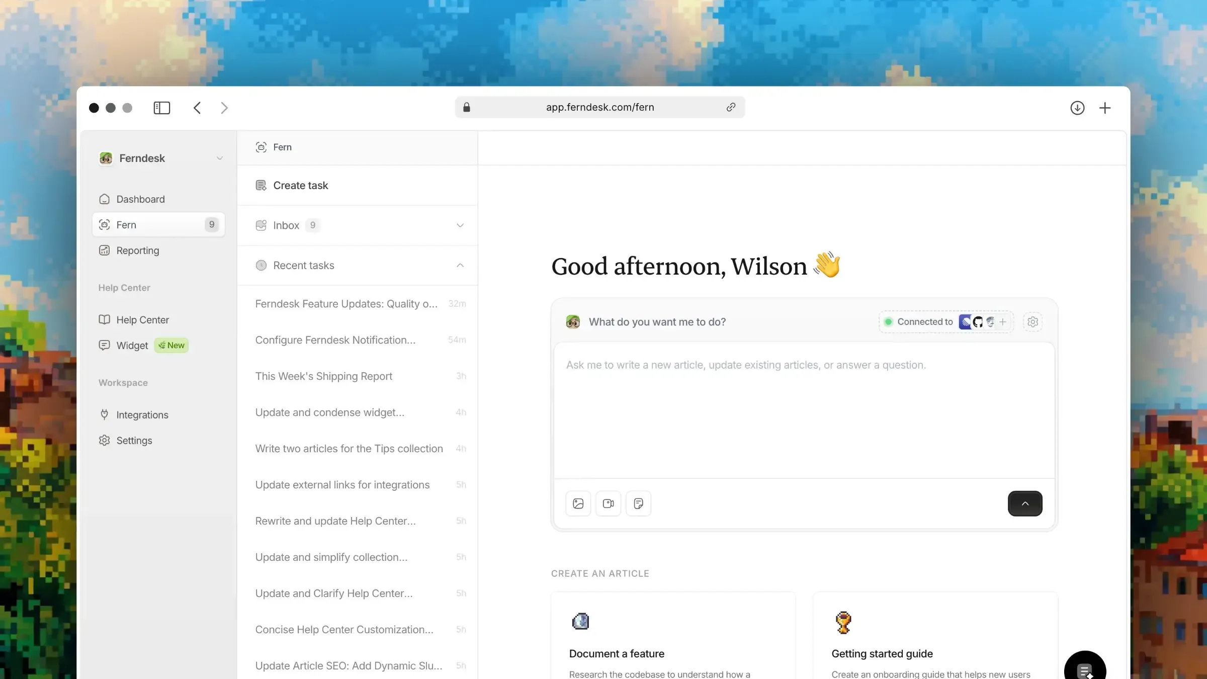If you haven't opened Ferndesk in a while, it'll feel a lot different. We've quietly shipped changes that make Fern better at automatically suggesting updates to your help center and noticing patterns in your support, your code, and your docs.